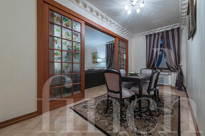 Если вы хотите купить элитную квартиру с ремонтом в центре Москвы, советуем обратить внимание на это предложение. Прекрасный ремонт в классическом стиле непременно понравится вам и, возможно, даже превзойдёт все ваши ожидания. Эргономично организованное пространство квартиры обыграно отделкой в светлой цветовой гамме. Здесь уютно, просторно, светло и очень красиво! Межкомнатные двери с витражным остеклением ¬- изюминка в дизайне интерьеров. Высокие потолки и выходящие на 3 стороны света окна позволяют квартире оставаться наполненной солнечным светом в течение всего дня.