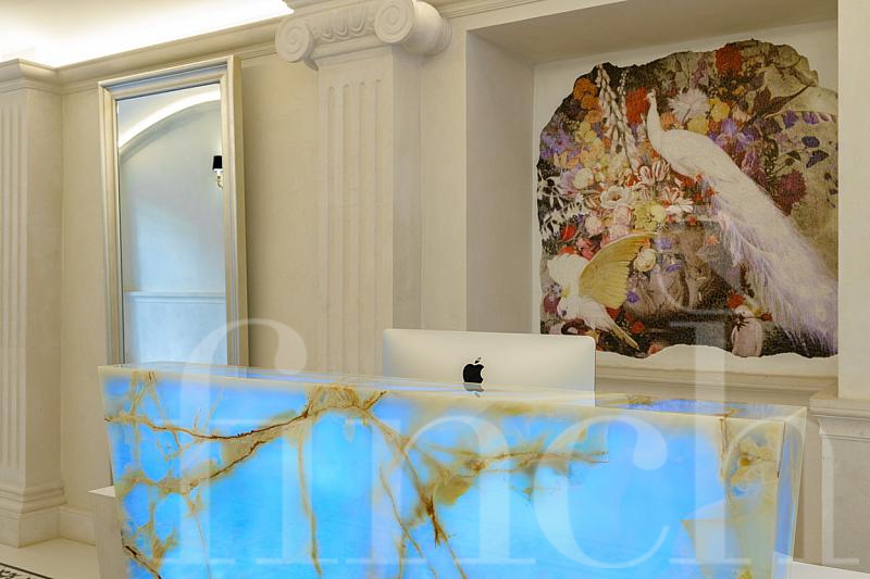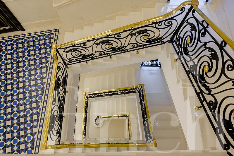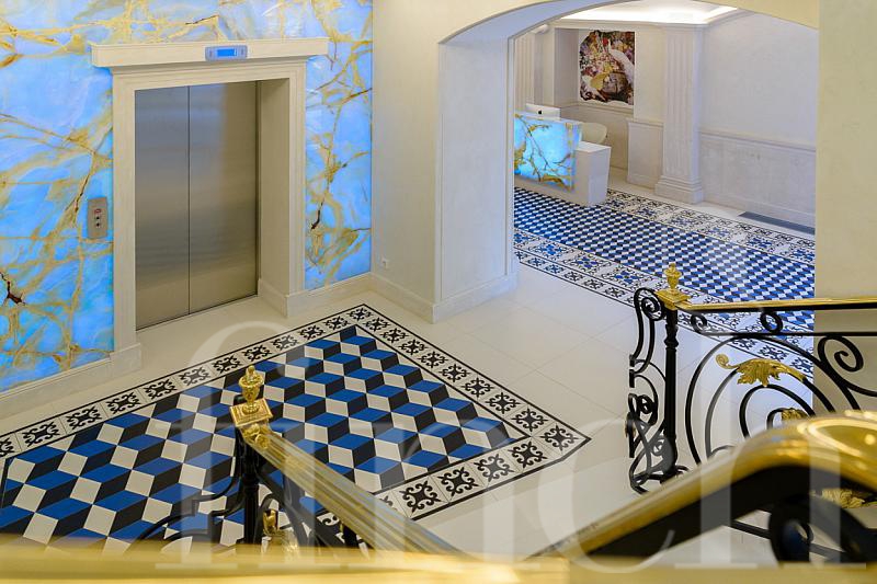 Зоны общего пользования отделаны в общей стилистике здания — филигранная кованая лестница с позолоченными перилами, стеновые панели из натурального камня, мозаичный пол с изящным геометрическим рисунком. Утончённый, классически аристократический стиль. И как положено в истинно аристократических домах, в il Ricco есть консьерж-служба, работающая в круглосуточном режиме и умеющая быстро и профессионально решать все бытовые вопросы.