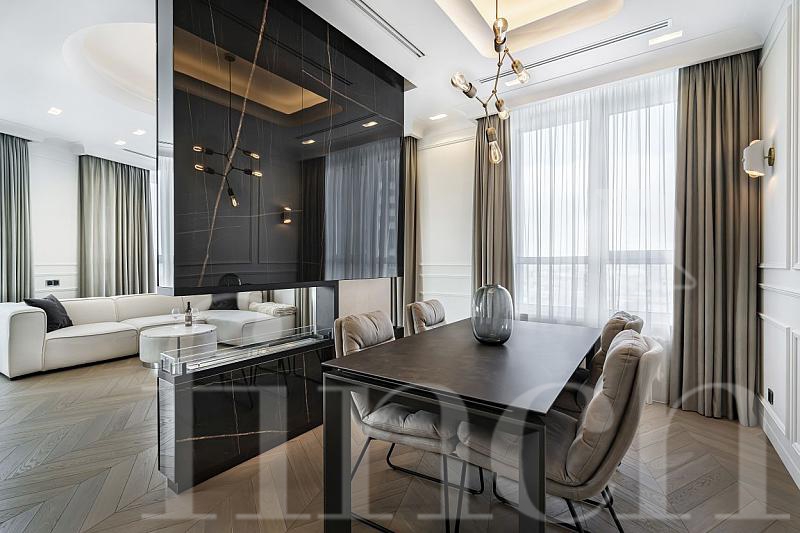 Видовая квартира с новым дизайнерским ремонтом в ЖК премиум-класса Сердце Столицы. В отделке квартиры использованы дорогостоящие экологичные материалы - натуральный камень, сланец, натуральная паркетная доска. Квартира полностью меблирована и оборудована бытовой техникой от ведущих производителей.