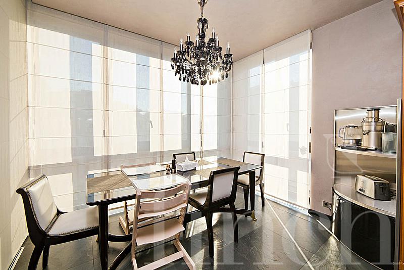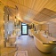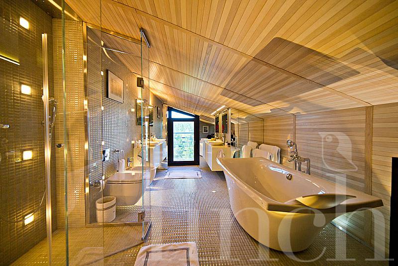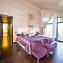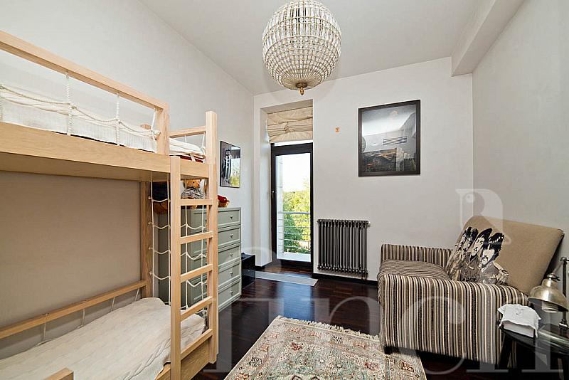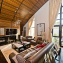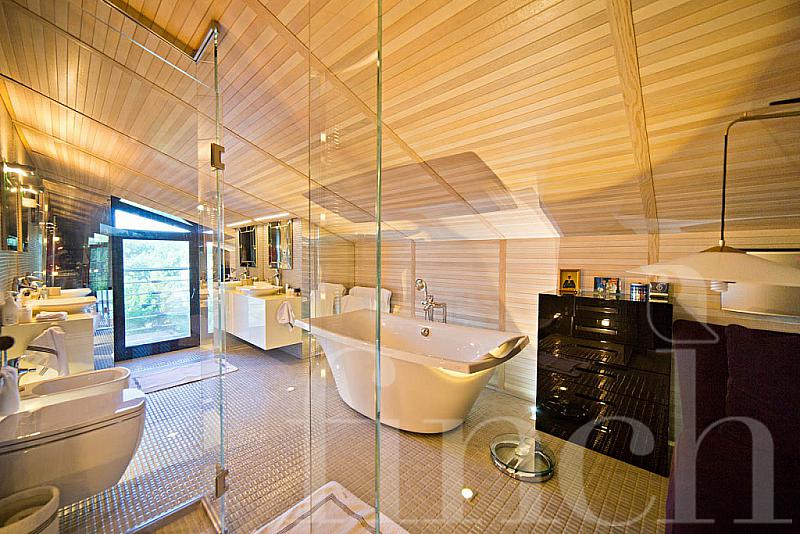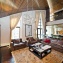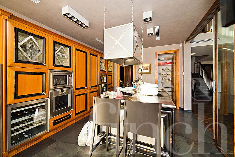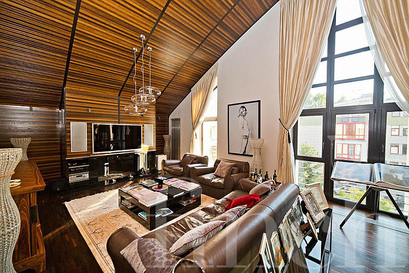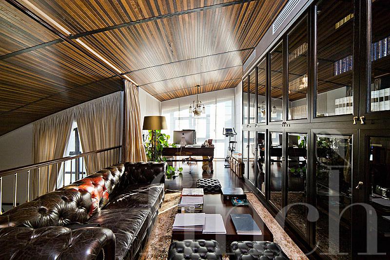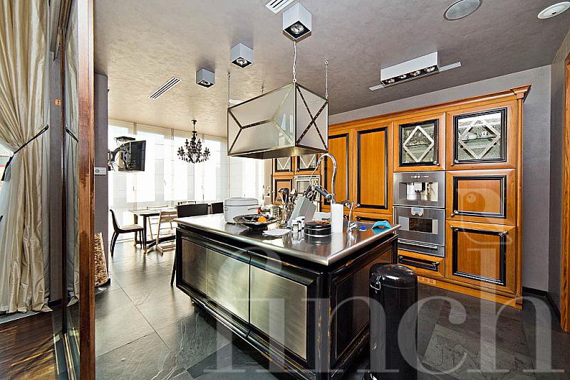 Большие окна со светлыми портьерами пропускают свет и до краёв наполняют комнаты солнечной энергией. Кожаная мягкая мебель и оригинальные люстры дополняют всё это великолепие и привносят очарование и уют. В центре пентхауса – очень высокий потолок - 7 метров, что позволило разграничить весь объём помещения на 2 яруса: на нижнем расположилась гостиная-кухня-столовая, на верхнем открытом ярусе – библиотека и кабинет. А всего на 320-ти квадратных метрах этого пентхауса разместилось 4 спальни, 4 санузла, библиотека с кабинетом, гостиная, совмещённая с кухней и столовой. Будучи расположен на 4- м этаже одного из корпусов ЖК «12 месяцев», пентхаус «предлагает» красивейшие виды на лесной массив.