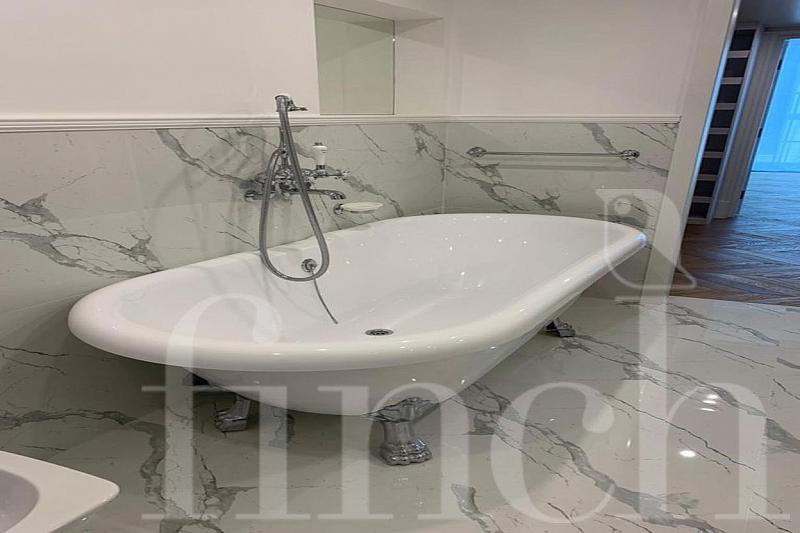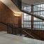 Входная группа расположенная со стороны двора, представляет собой просторное двухуровневое лобби со вторым светом. Интерьер выполнен из изысканных отделочных материалов в стиле, соответствующем архитектуре здания. В доме организована круглосуточная работа консьерж-службы.