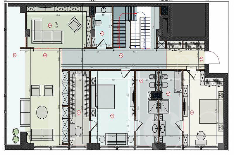 6-этажный жилой дом на 15 квартир. Первый этаж занимают офисные помещения, на втором этаже и выше располагаются жилые квартиры с огромными оконными проемами . Высота потолков в квартирах -4,5 м.
