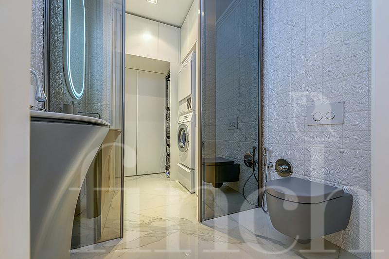 Планировочное решение предлагает просторную гостиную-столовую, 2 спальни, 2 санузла, постирочную, также предусмотрена встроенная система хранение (общая площадь 28м2).