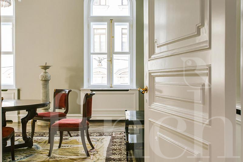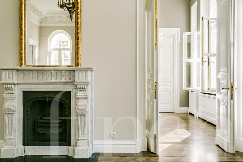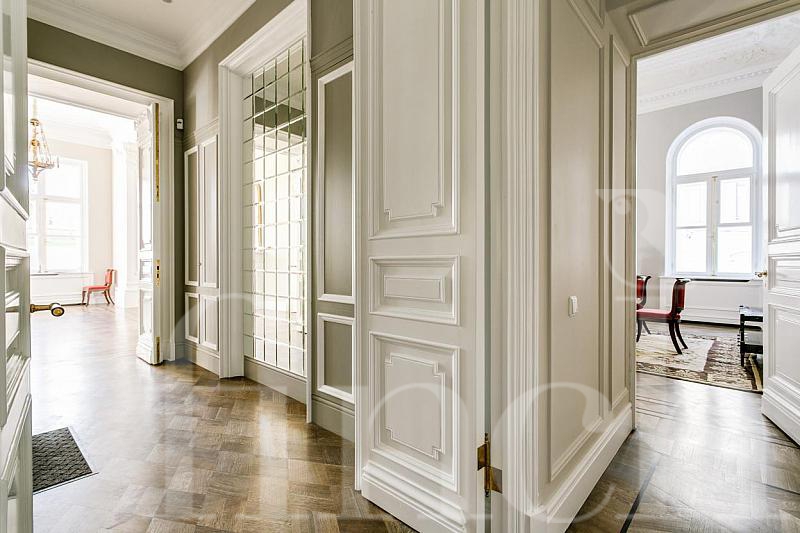 Один из редких случаев воссоздания доходных домов XIX века. В процессе работы была проведена колоссальная работа по сохранению и реконструкции фасадов подъезда и конечно квартиры.