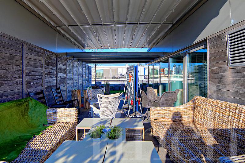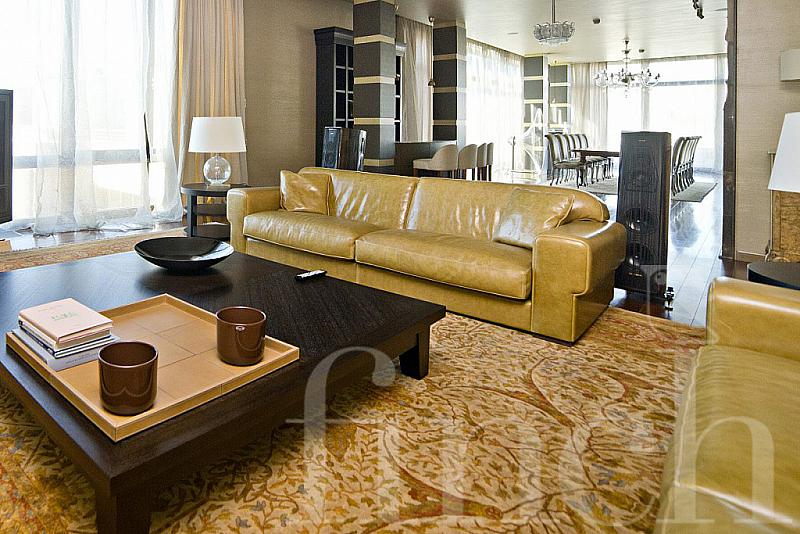 Терраса, чья площадь составляет 90 кв.м., выходит на три стороны света и, к удовольствию владельцев пентхауса, предоставляет возможность наслаждаться лучшими видами столицы. Что касается ремонта и дизайна интерьеров, то, пожалуй, трудно уложить это описание в два предложения. Скажем только, что каждая комната пентхауса представляет собой отдельный мир, потому что совершенно по-разному отремонтирована и украшена: где-то преобладает современный стиль с налётом хай-тека, где-то восточный, богатый узорами и насыщенный цветом, где-то классический. Изюминкой гостиной стало уникальное, выполненное на заказ, панно из натурального камня, изображающее шахтёров. Пентхаус меблирован и продаётся вместе с мебелью.