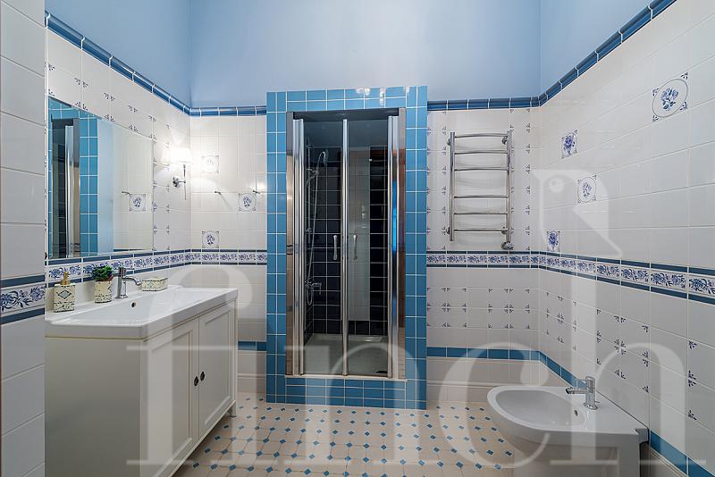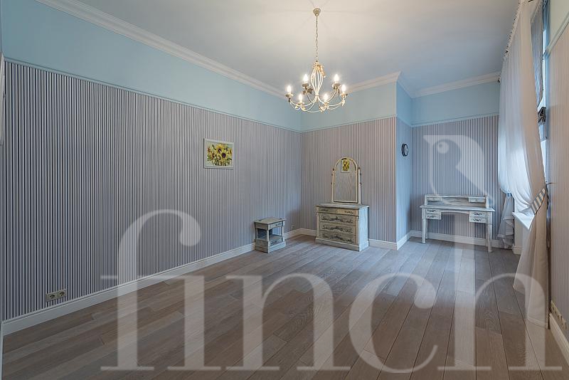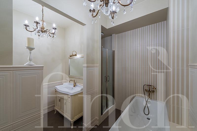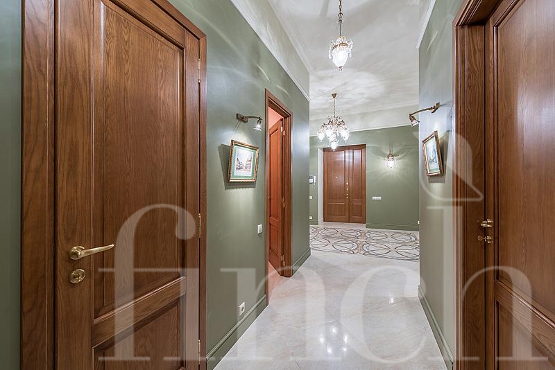 Эта элитная квартира находится на 3-м этаже в доме на Остоженке 7. Квартира очень просторная (172 кв.м.) и уютная. Если Вы хотите купить элитную квартиру с ремонтом в современном классическом стиле, то это — отличный вариант. Основные цвета, использованные в дизайне интерьера, — беж, коричневый шоколадных оттенков, серый, голубой. В квартире большая гостиная, кабинет, кухня с бытовой техникой премиальных марок, 2 спальни и 3 ванных комнаты. В каждой комнате — качественный и дорогой ремонт, сделанный с душой: в спальне — французская классика, в кухне — прованс, в санузлах — английская классика.