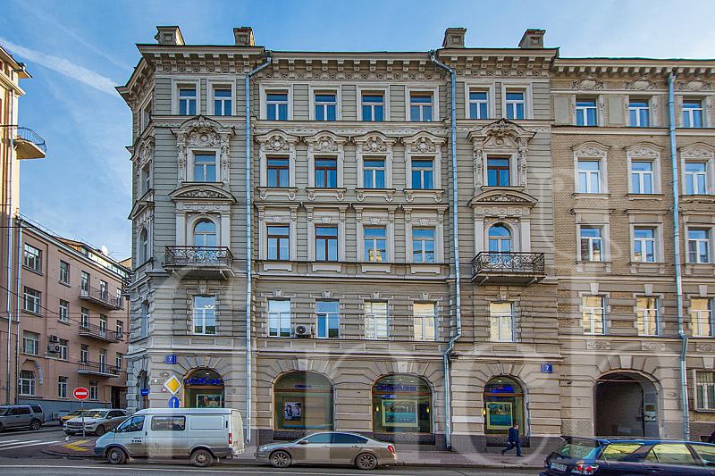 Остоженка 7 — очень красивый элитный дом в 5 этажей, построенный в 1899 году по проекту архитектора А.В. Иванова, работавшего в стиле модерна, неоклассицизма и эклектики. И Остоженка 7 содержит в себе элементы излюбленных стилей А.В. Иванова: растительный орнамент, но его немного, скруглённые проёмы окон, кованые французские балконы, строгие пропорции, прямые горизонтальные линии, пересекающие весь фасад. Очень нарядный вид.