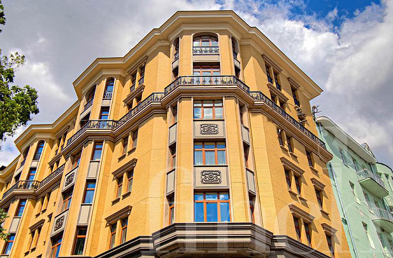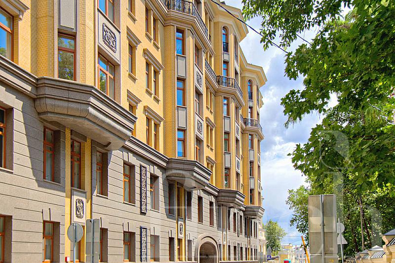 В этом элитном доме — 2 подъезда и всего 24 квартиры, площади которых составляют от 180 до 575 кв.м. Если вас интересует не вторичная продажа, то вы можете купить здесь квартиру в бетоне, с высотой потоков в 4,2 м. На верхних этажах, включая мансардный, находятся огромные двухуровневые апартаменты с открытыми террасами. Под домом построена двухуровневая парковка, рассчитанная на 44 машины. Есть и гостевая стоянка. Во дворе дома выполнен ландшафтный дизайн, засажены клумбы, оборудована детская игровая площадка, а также зона отдыха со скамьями. Дом находится под охраной и вход в него возможен только для жителей.
