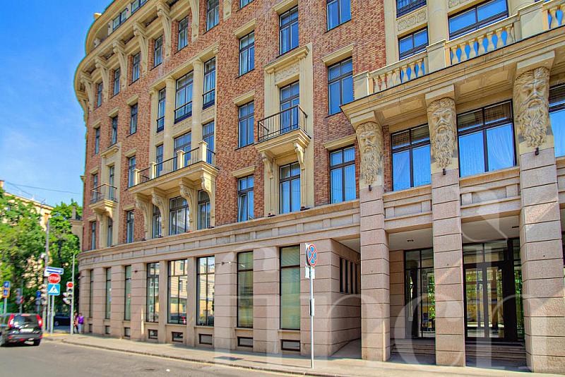 Лепной карниз, опоясывающий дом на уровне 5-го этажа, словно кружевной воротничок на платье дворянина. Ещё одно украшение — лепные головы, поддерживающие балкон над входной группой.