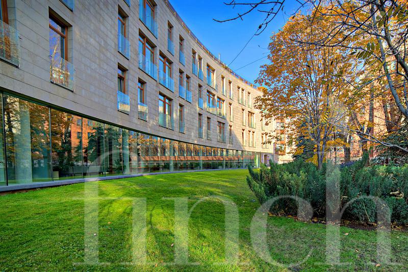Дом 1 в Молочном переулке, пожалуй, наиболее яркое и запоминающееся здание в районе Остоженки. Благодаря великолепному скверу перед домом, украшенному необычными скульптурами, создаётся впечатление, что Вы находитесь за пределами столицы. Кажется, что столь ухоженных деревьев и кустарников просто не может быть в таком мегаполисе, как Москва. Этот сквер перед домом в Молочном переулке стал визитной карточкой района Остоженки, он — первое, на что все обращают внимание, находясь рядом с домом.
