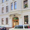Фасад четырёх нижних этажей полностью воссоздаёт внешний вид того дома, который был построен на этом месте в 1900 году — ярко-голубая стена в сочетании с белыми портиками над окнами и такой же белой лепниной выглядит очень нарядно, свежо и радостно.