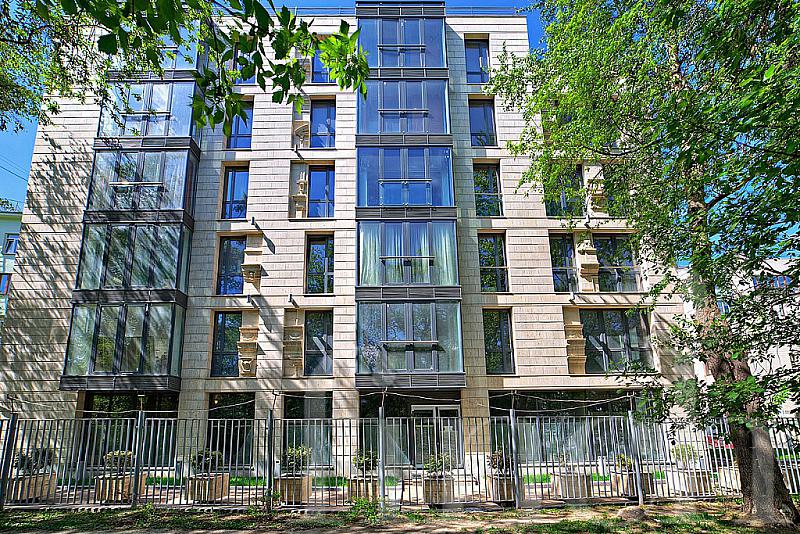 А зелёный сквер, обступающий дом с трёх сторон, способствует добровольному, и такому нужному в центре столицы, уединению.