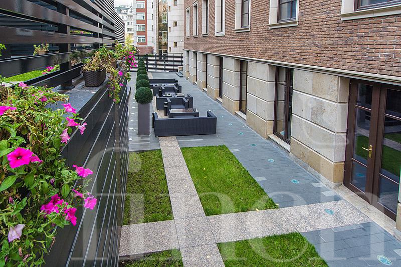Придомовая территория с патио-площадкой — предмет отдельного разговора — здесь настолько красиво и уютно, что трудно передать словами. Лучше всего просто побывать здесь и испытать все оттенки эстетического удовольствия от проведённого здесь времени.