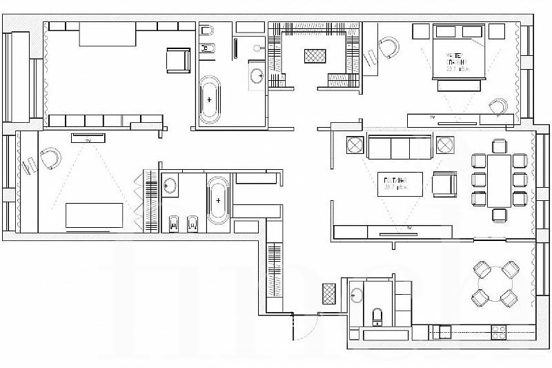 Предлагается квартира свободной планировки площадью 179 м2 в особняке Razumovskiy. Квартира без отделки, что позволяет спланировать 3 спальни, 3 ванные комнаты, гостиную, кухню. Окна квартиры ориентированы на две стороны.