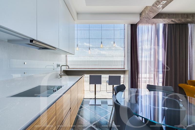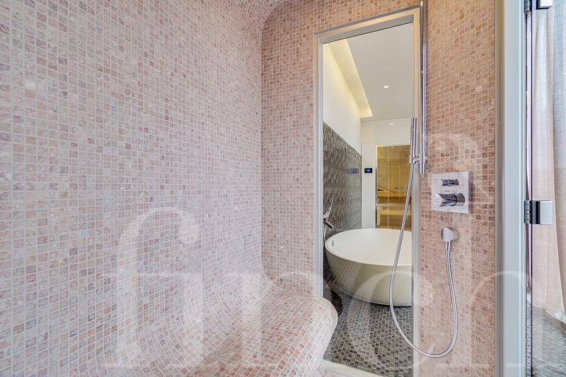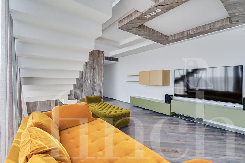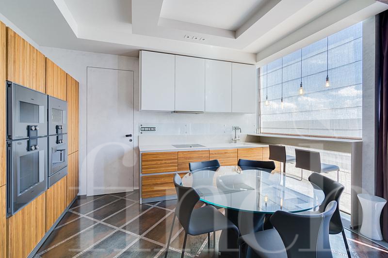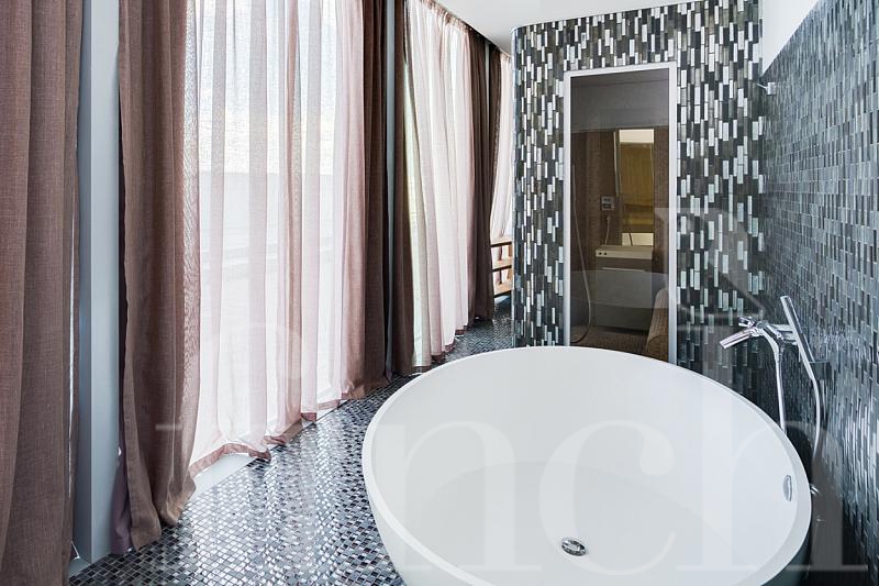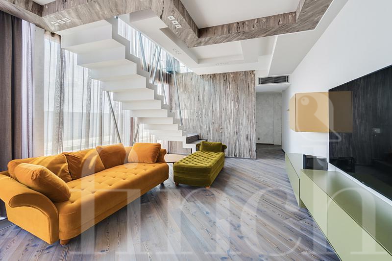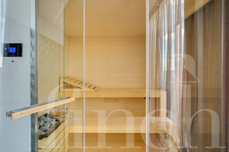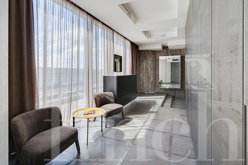 В этой элитной квартире сделан дизайнерский ремонт с использованием сантехники, мебели, бытовой техники, текстиля и другой продукции ведущих мировых марок: Gaggenau, Bulthaup, ZUG, Miele, La Falegnami, Presotto, Villeroy&Boch, Pilippe Starck, Svenskt Tenn Stockholm, Laufen, Barausse, Wood Bee, Ghibli –SAUNAVITA, HAFRO. Освещение в пентхаусе — уникальное, так как выполнено в единичном экземпляре. Оно светодиодное, управляется с любой точки квартиры, где уже есть выключатели и где они могут быть, если Вы захотите их добавить. На всех окнах установлены электрокарнизы, красиво подсвечивающие шторы. Во всех санузлах, во всех тропических душевых, хамаме, сауне установлена сантехника лучших импортных брендов. Фильтрованная питьевая вода подаётся вместе с обычным водопроводом в спа-зону, видовую ванну и в кинозал на втором уровне, на кухне можно её включать даже готовым кипятком. В подземном паркинге есть машиноместа, закреплённые за этим пентхаусом.