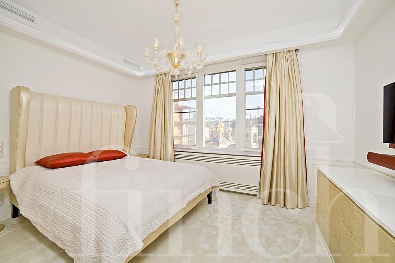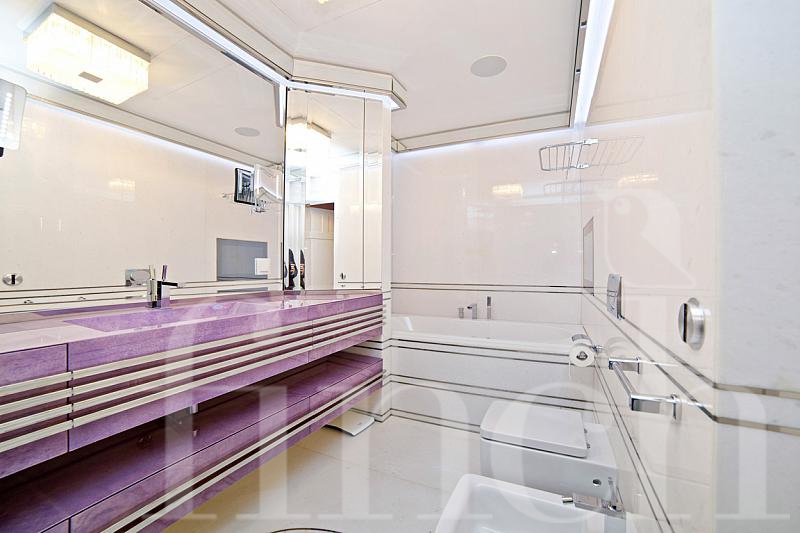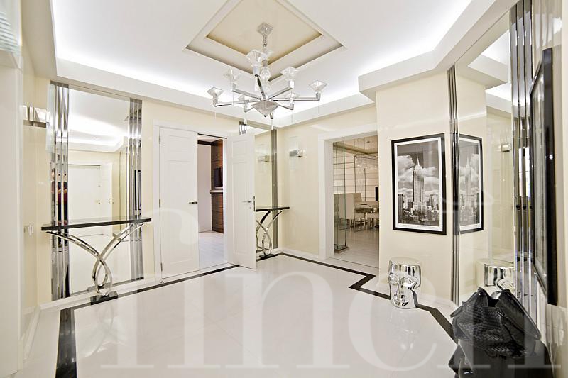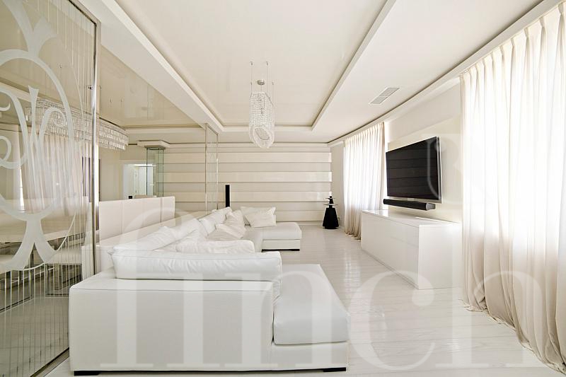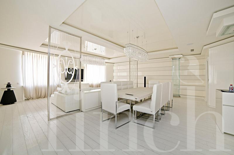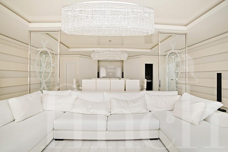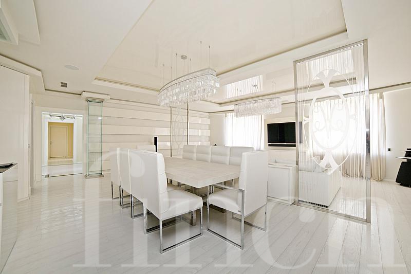 Эта элитная квартира на 7-м этаже очень уютна и функциональна: она полностью меблирована, оснащена техникой и предметами интерьера. Безупречная отделка в современном стиле — светлые стены и полы, светлая мебель, великолепные люстры, шикарные портьеры. Даже если Ваша семья очень большая, места хватит всем: кухня, гостиная с обеденной зоной, кабинет, 3 спальни, 2 ванных комнаты, гостевой санузел, хозяйственная комната. Всё устроено очень комфортно, всё продумано и грамотно сделано. Настолько правильно, что находясь здесь, ощущаешь стабильность жизни, которой так не хватает за стенами этого дома.