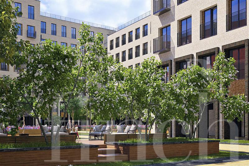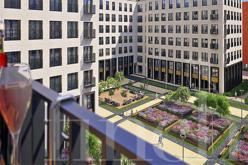 Внутренний двор скрыт от внешней суеты мегаполиса благодаря особенности расположения корпусов I’M-квартала. На территории двора, площадь которого составляет 1 га, будет посажен великолепный сад – фруктовые деревья, туи, берёзы, шпалерные розы. Эта территория зонирована по интересам – для активного и спокойного времяпровождения – спортплощадки, прогулочные дорожки, скамейки, зоны рекреации. Сад будет украшен оригинальным фонтаном. Таким образом, I’M-квартал создаёт для своих жильцов камерное пространство - тихое, уютное и зелёное - в самом центре Москвы.