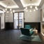 Для фасадов предложено три варианта решений: парадные фасады, внутренние и внешние. Цветовая гамма для фасадов выбрана очень праздничная - красный кирпич, светло-бежевый цвет, шоколадный оттенок. Панорамные окна и французские балконы с коваными перилами добавят изящности в облик домов I’M-квартала. Интересный архитектурный элемент – пешеходные галереи с колоннами, которые опоясывают здания по периметру. Они соединяют входы в здания и позволяют жителям I’M-квартала не мокнуть в дождь при переходе из одного корпуса в другой. Дизайн лобби соответствует стандартам лучших мировых отелей: эксклюзивные материалы, зона отдыха с шикарными диванами изумрудного цвета и камином, wi-fi.