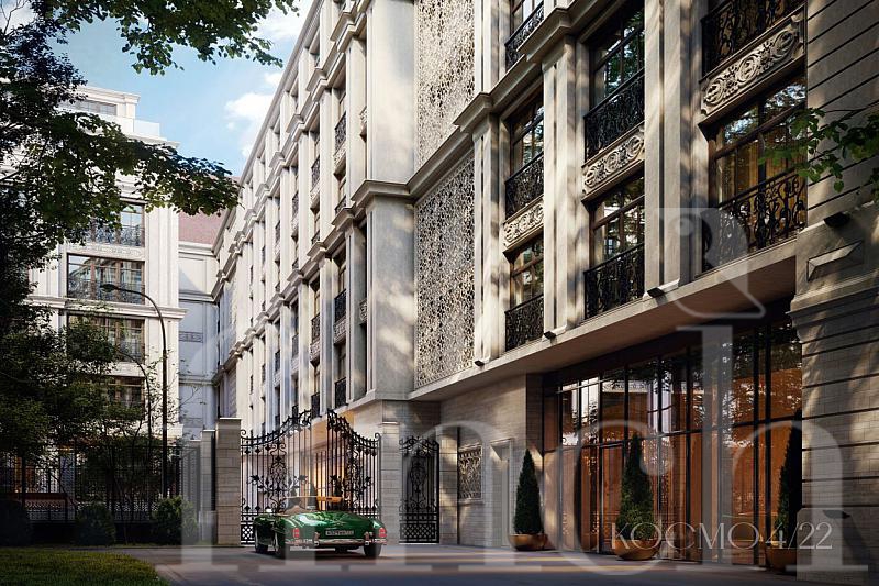 История «Космо 4/22» насчитывает несколько поко-лений. Его предшественник, доходный дом П.К. Чепы- шевой, принял первых гостей в начале прошлого века. В советское время здание было реконструировано в гостиницу, которая привлекала своими неповторимыми видами на реку, мост и набережную напротив. Теперь этот обзор открывается из окон и террас нового клуб-ного дома. Дом класса De Luxe «Космо 4/22» обеспе-чивает полную приватность — въезд и входы, включая парадный подъезд, располагаются во внутреннем про-странстве дома.