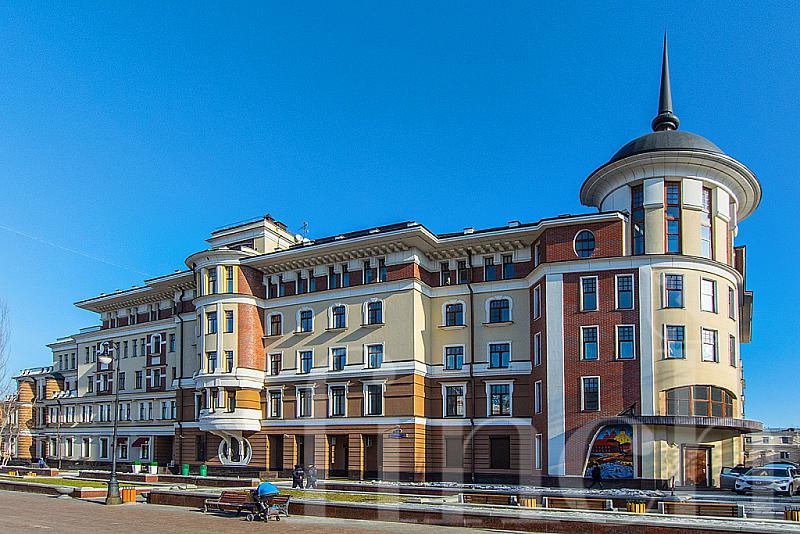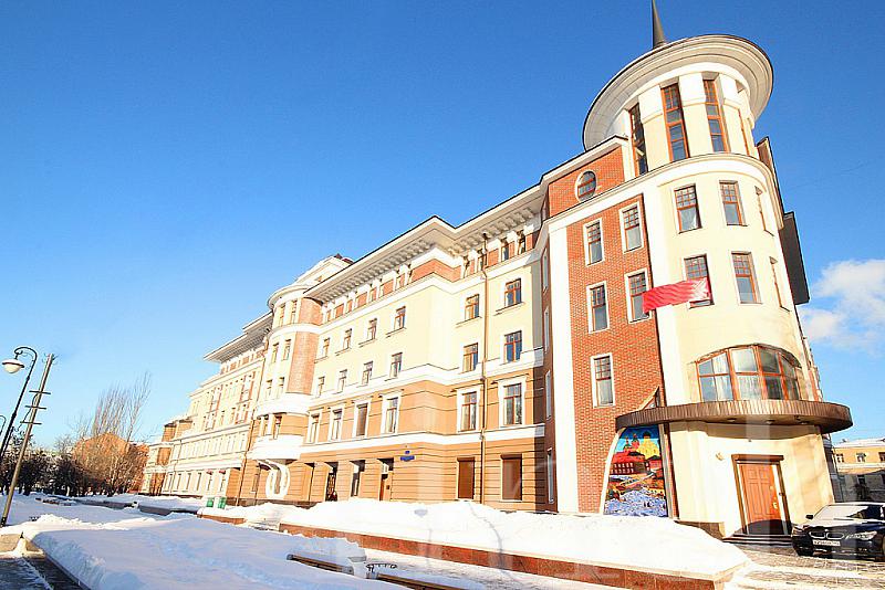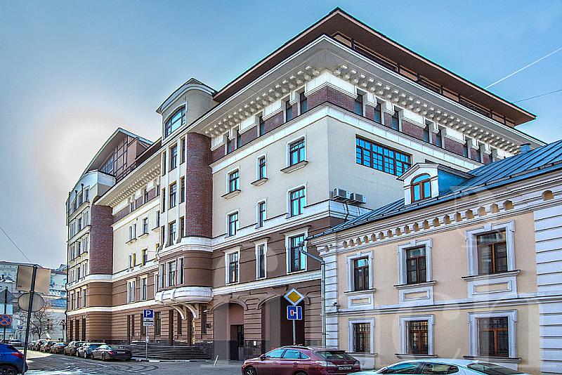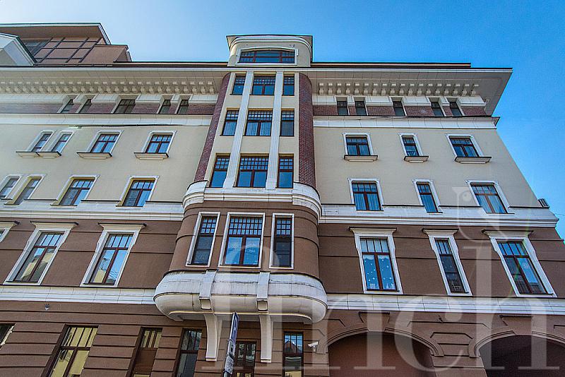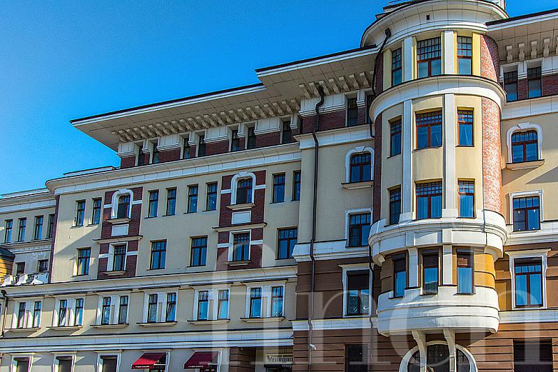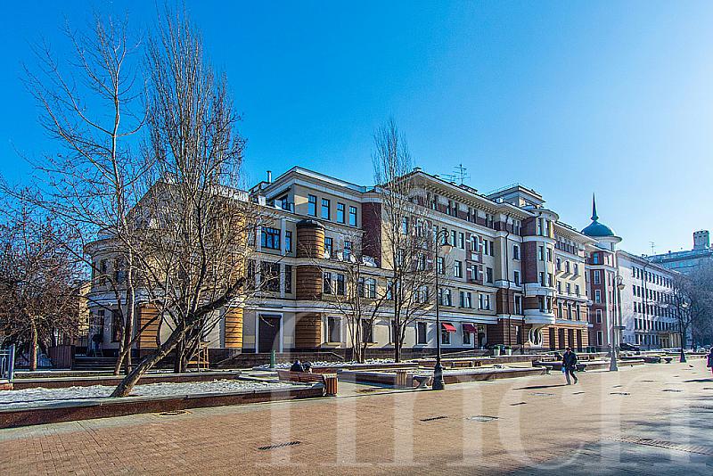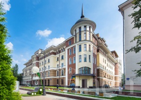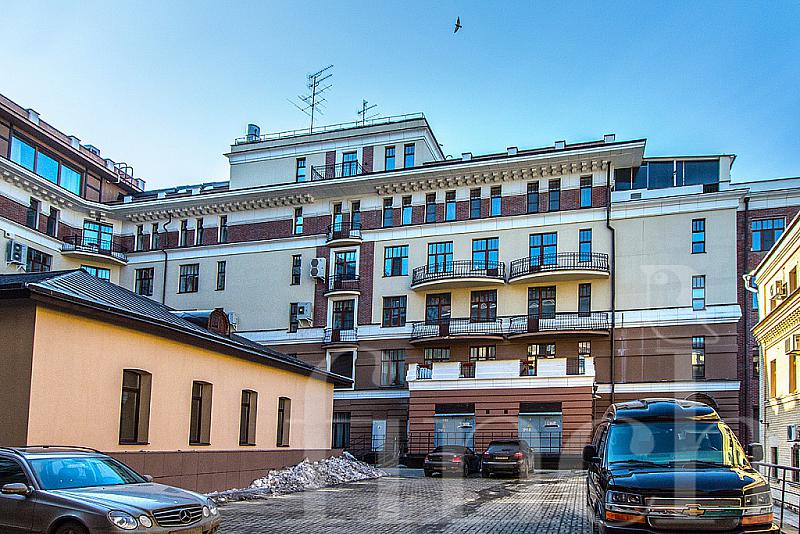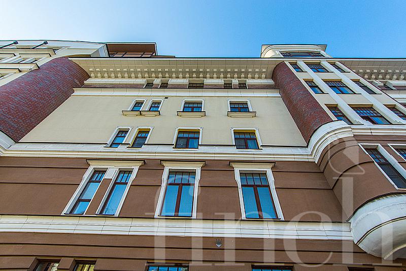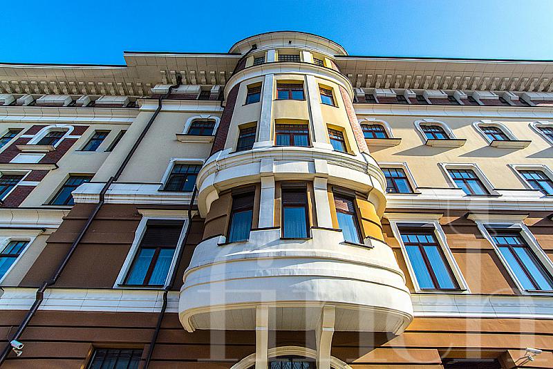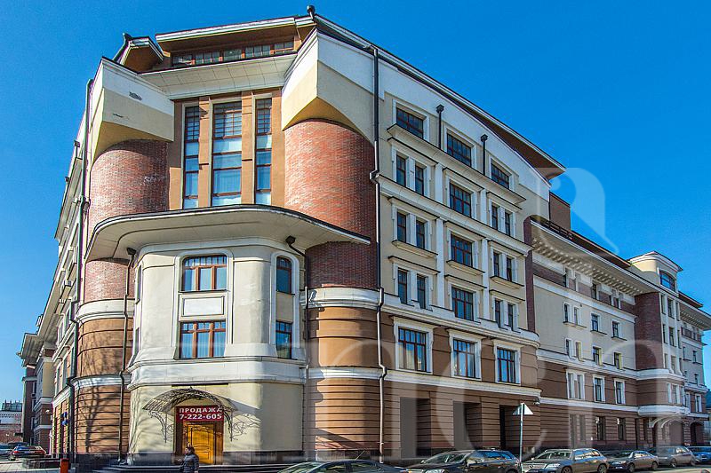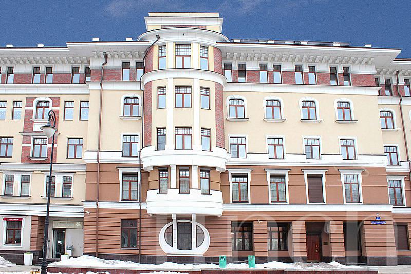 Дом расположен в центральном историческом районе Якиманки. Красивый фасад в пастельный тонах, колонны, полукруглые эркеры, высокие потолки 3.4 м, благоустроенная территория: фонтан, скамейки, цветники.