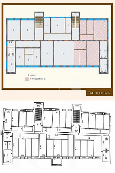 На втором этаже находятся офисные помещения, рассчитанные на 70 и более сотрудников.
