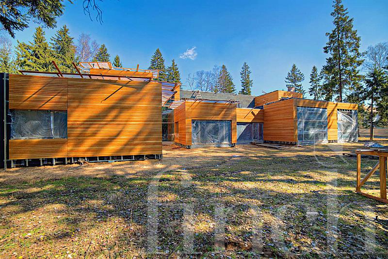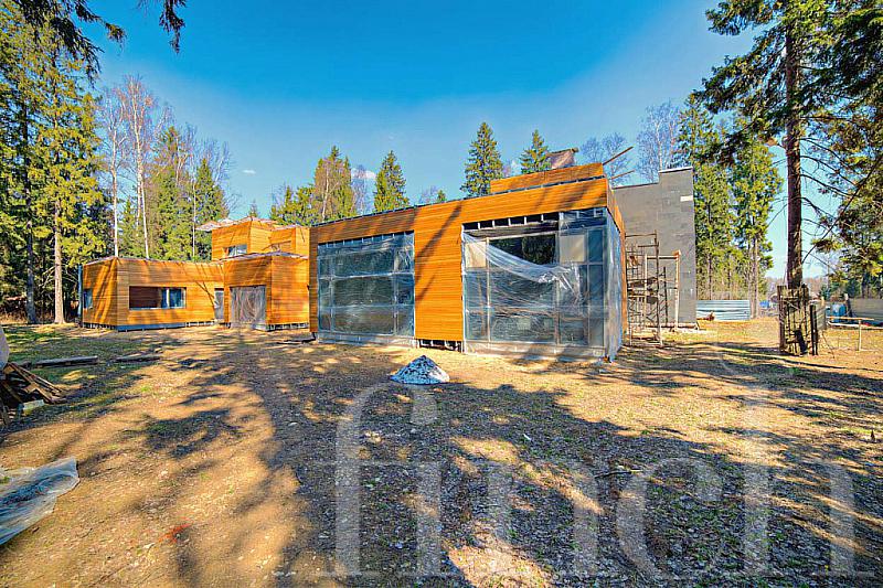 Современный дом 1200 кв метров+цоколь, эргономичный, большое остекление, плоская эксплуатируемая кровля, много спален, ведутся строительные работы по фасаду, инженерия вся смонтирована и разведена по дому. Лесной участок
