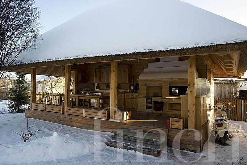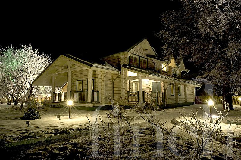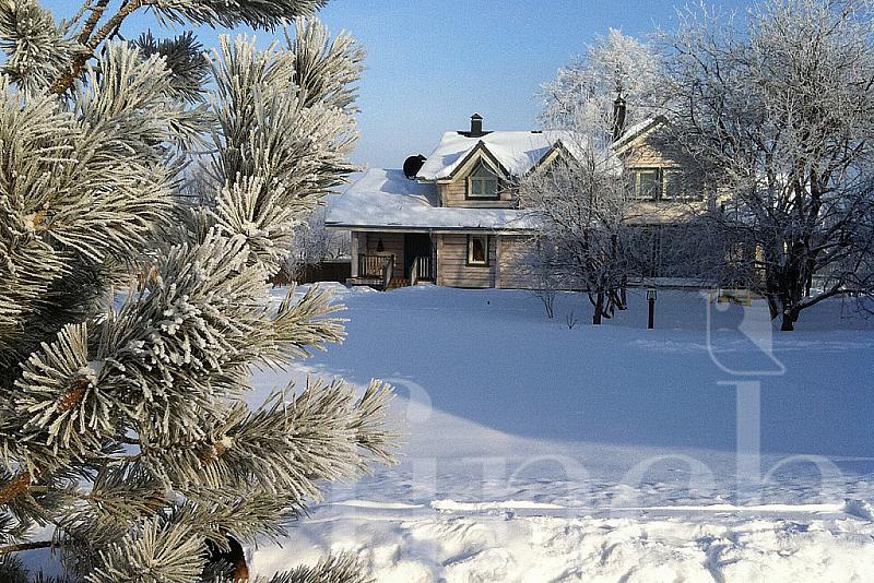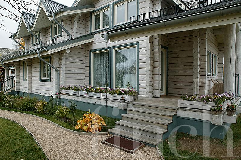 Дом 2 построен из соснового лафета, крыша выполнена из сланца.