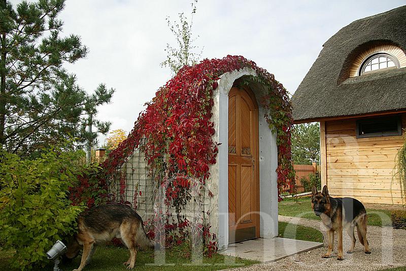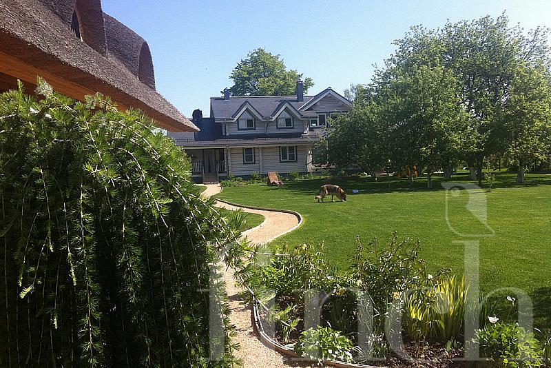Территория, примыкающая к основному дому, имеет небольшой лес, площадку для тренировки собак и спорта, временный «городок» для домашних животных (курица, фазан, павлин, коза, утки, гуси и т.д.) и электрощитовую , с оформленными 400 кВт электроэнергии.