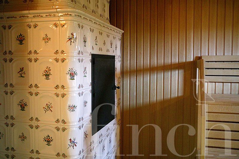 Здание бани состоит из следующих помещений: гостевого туалета (уличного); котельной (с отдельным входом с улицы), обеспечивающей теплом и горячей водой дом, баню и сарай; топочной. Помещение бани имеет отдельный вход, комнату отдыха с кухней, предбанник, помывочную, санузел и парилку.