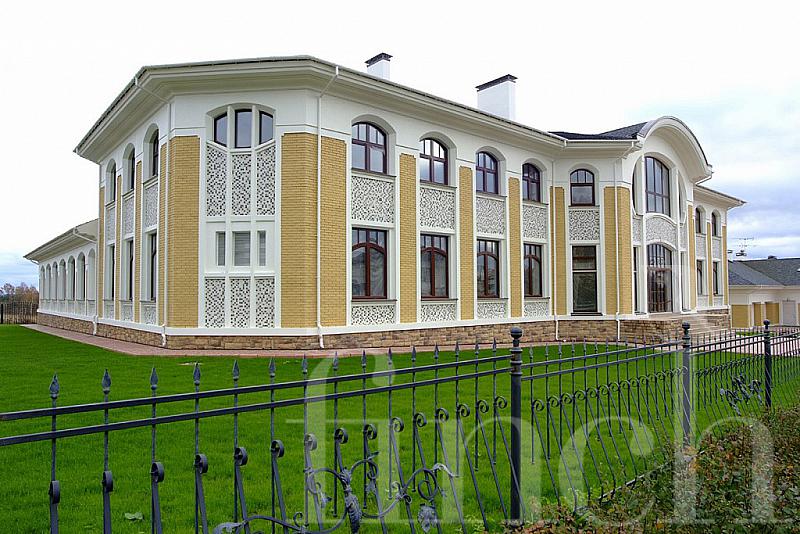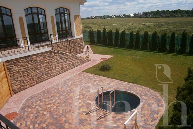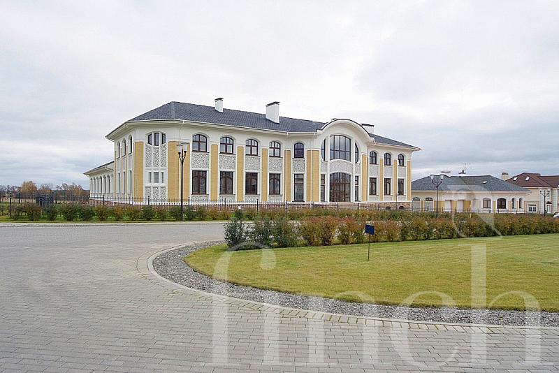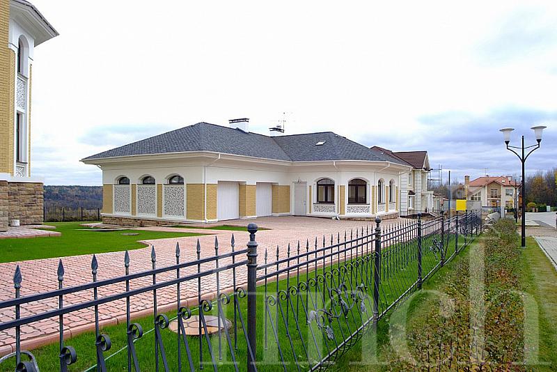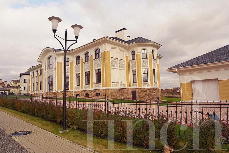 В этой двухэтажной резиденции 9 спален и 10 ванных комнат, просторная кухня, столовая, огромная гостиная, хамам, большой бассейн (4х25 метров) с уникальной системой очистки воды без хлора. На территории участка есть купель под открытым небом. Отделка помещений выполнена в классическом стиле, в светлых тонах. Потолки высокие, окна очень большие, в некоторых комнатах – от пола до потолка. А поскольку посёлок Лужки расположен на возвышенности и сама резиденция тоже, то из её окон видны окружающие просторы, покрытые лесами на многие километры. Очень красиво!