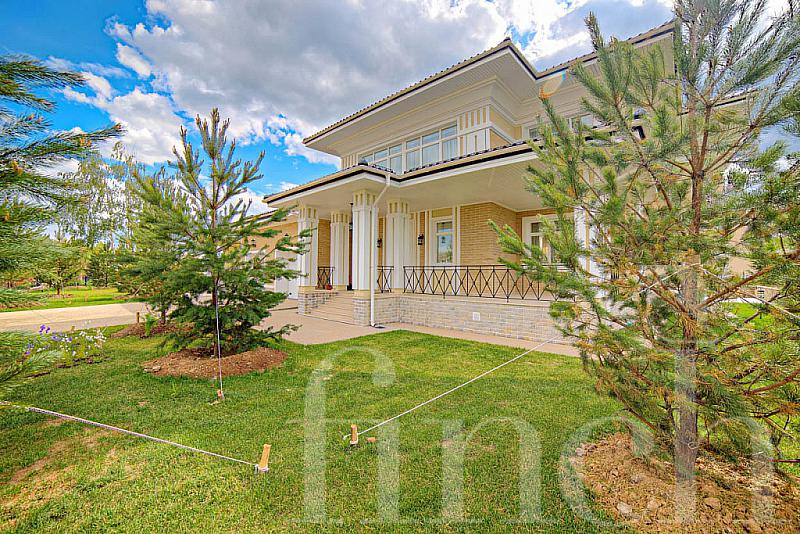 Описание дома. Материал кирпич, деревянные стеклопакеты, натуральная черепица, отделка фасада штукатуркой, камнем, мозаикой.