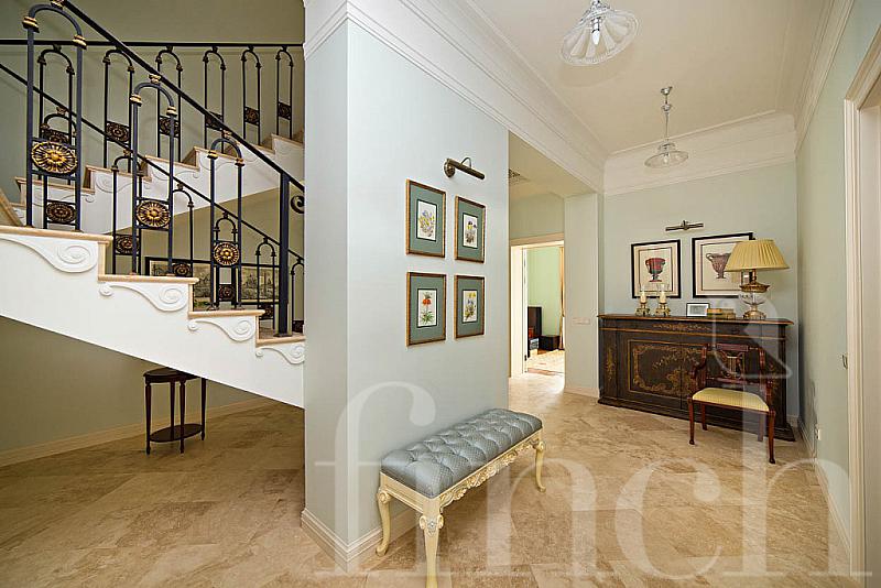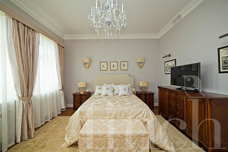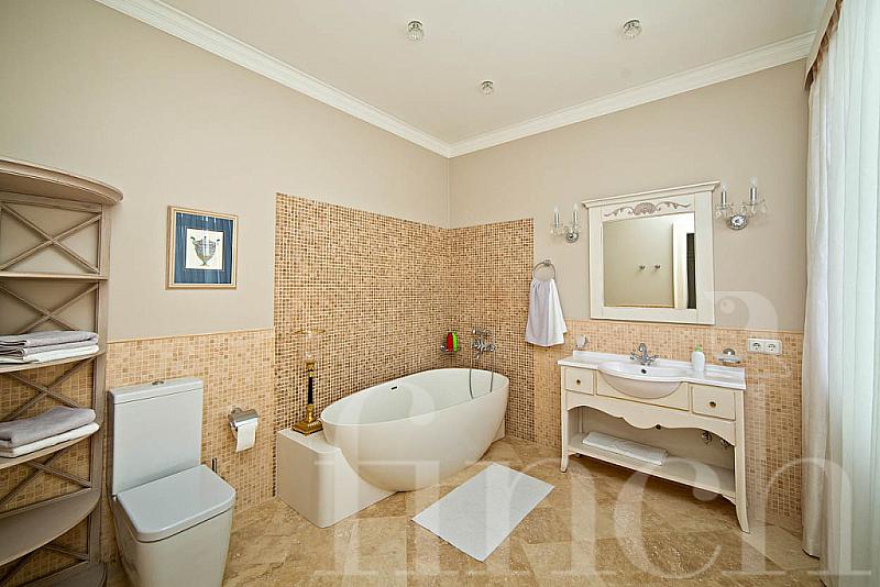 Второй этаж: холл, хозяйская спальня с ванной и гардеробной, 2 спальни с санузлами и гардеробными.