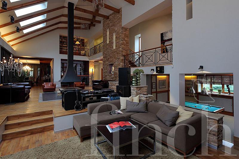 Этот шикарный особняк расположен в посёлке Горки-2 по Рублево-Успенскому направлению. Дом эргономичен и красив, словно сделан из лего-конструктора и своей конструкцией напоминает игрушку. Несмотря на то, что особняк выглядит довольно компактно, его площадь составляет 650 кв.м. В нём устроено 5 спален и 6 ванных комнат, кабинет, большая гостиная-столовая с кухней и барной зоной, библиотека, каминный зал, бильярдная комната, бассейн и сауна.