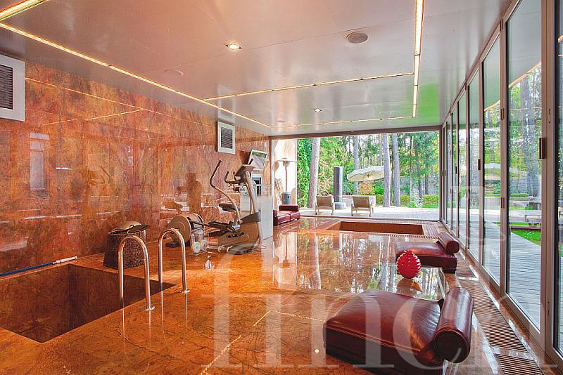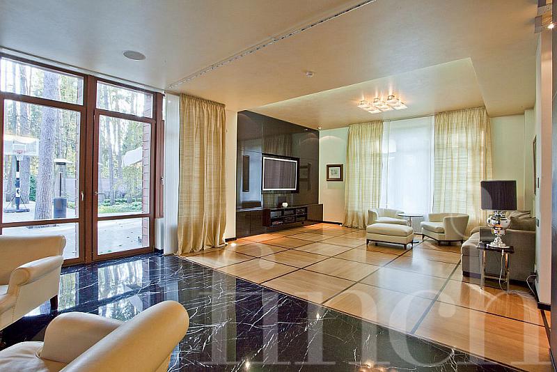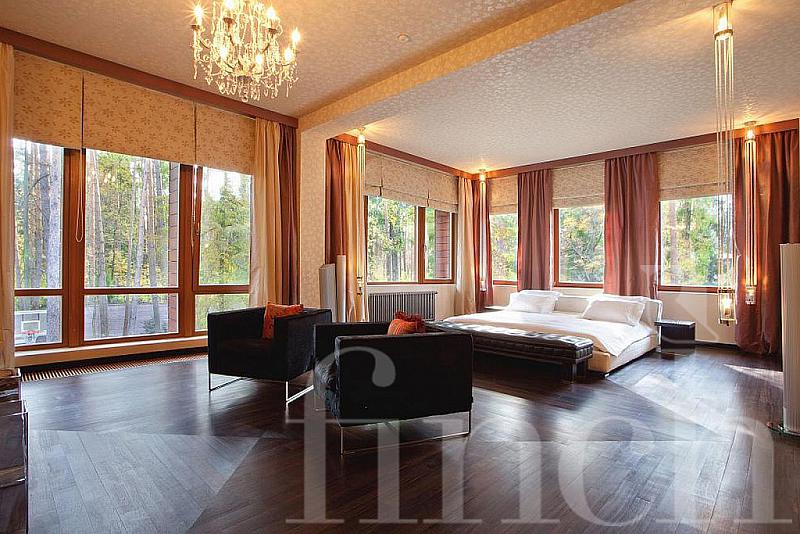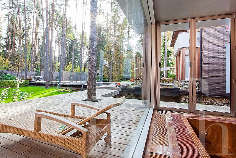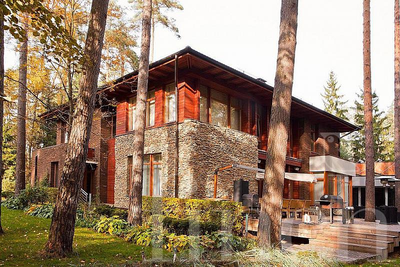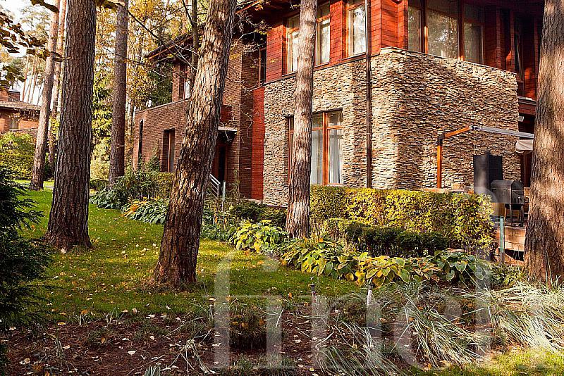 Красивый дом с эксклюзивной отделкой и мебелью на лесном участке с ландшафтным дизайном.