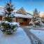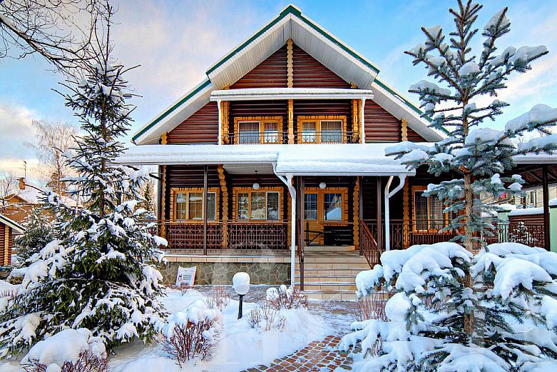 Этот дом из бруса — собрат русской деревянной избы, только, конечно, современный собрат, элитный, дорогой. Словно пришедший к нам из русских сказок, с васнецовских картинок, дом находится в элитном поселке Изумрудный век по Рублево-Успенскому шоссе, на красивом лесном участке площадью 15 соток. Он огорожен по всему периметру деревянным высоким забором, покрашенным в коричневый цвет. На участке выполнен ландшафтный дизайн, уложена тротуарная плитка, посажены пушистые молодые ёлочки.