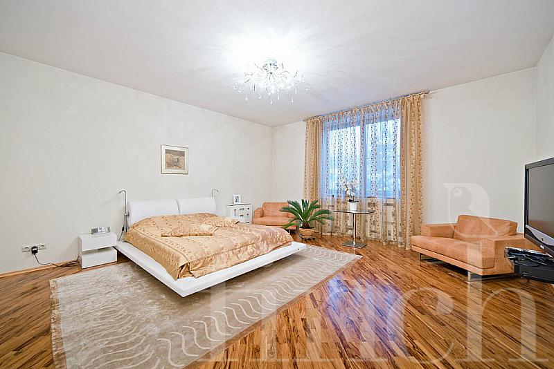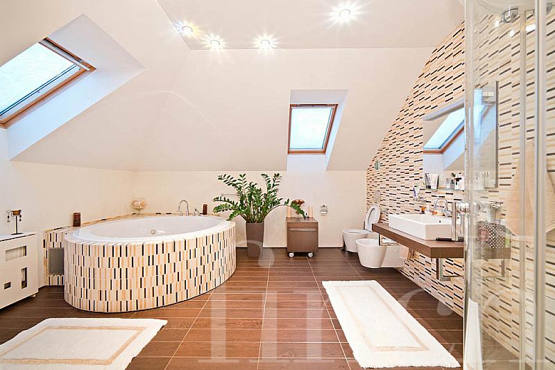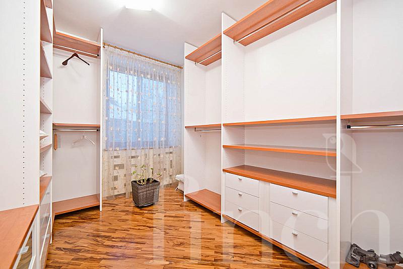 На мансарде спальня с гостиной, ванной комнатой и гардеробной.