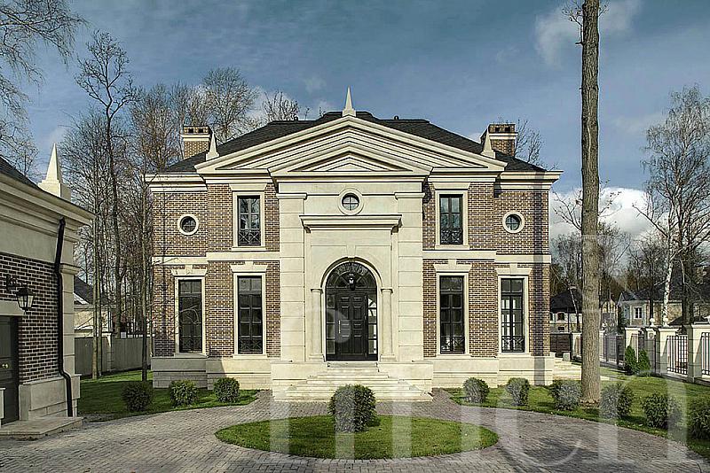 1 этаж: прихожая, гардеробные, холл, столовая, гостиная, кабинет, каминный зал, комната для завтрака, кухня, кладовая, с/у.