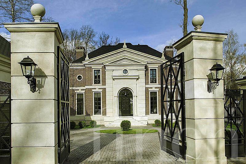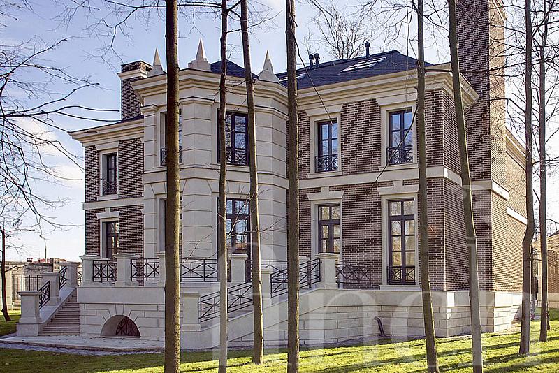 2 этаж: Хозяйская спальня с камином, огромной ванной комнатой в эркере и гардеробной, 3 спальни с ванными комнатами и гардеробными.