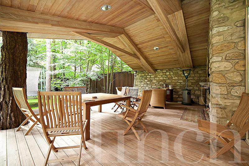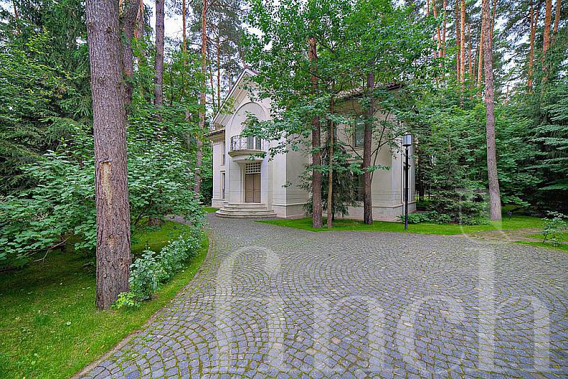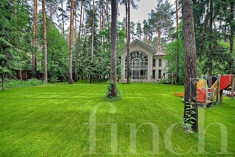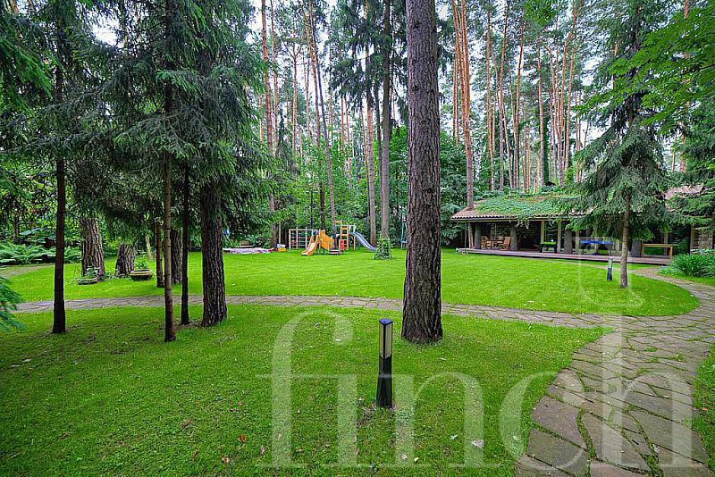 Лесной участок с вековыми соснами, выполнены качественные ландшафтные работы: дорожки, освещение, газон, автополив.