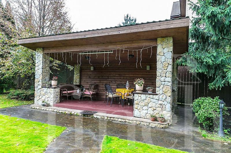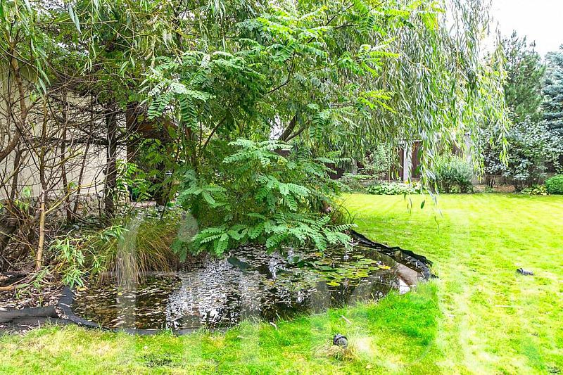 Ухоженный участок 15 соток с прудом, зоной для барбекю, фонтаном. Навес для 4 автомобилей.